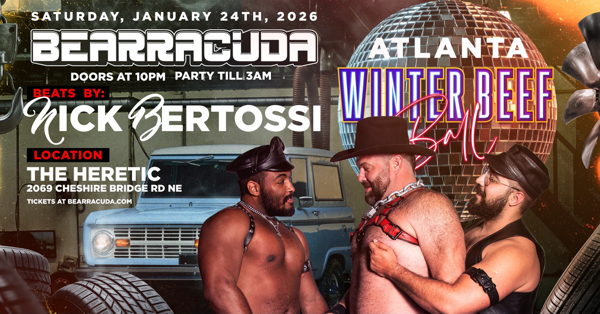 WINTER BEEF BALLJock & Underwear Party!Clothes Check Available Bearracuda is back to kick off 2026 with our Winter Beef Ball! Nick Bertossi spins all night from 10pm-LATE Check your clothes, cruise around and get sexy with us on the dance floor. Tip our hot, beefy dancers, cruise and socialize all night! Adv tix available here: https://www.eventbrite.com/.../bearracuda-atlantawinter... […]