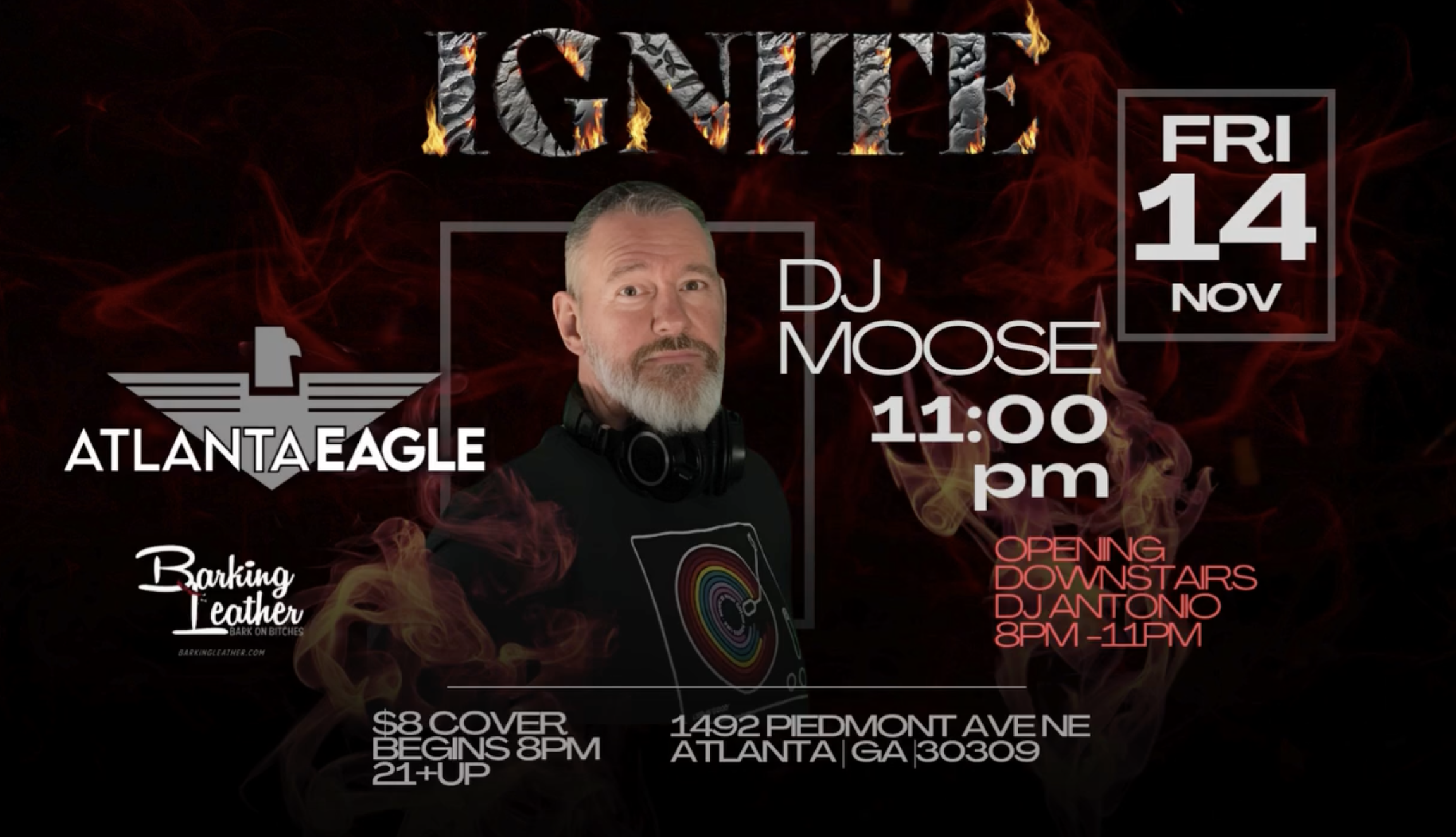 Ignite is back this Friday, November 14 at Atlanta Eagle! DJ Moose takes over at 11PM Opening set downstairs by DJ Antonio 8–11PM $8 cover | 21+ | Doors open at 8PM1492 Piedmont Ave NE, Atlanta, GA#AtlantaEagle #Ignite #DJMoose #HouseMusic #Nightlife See less