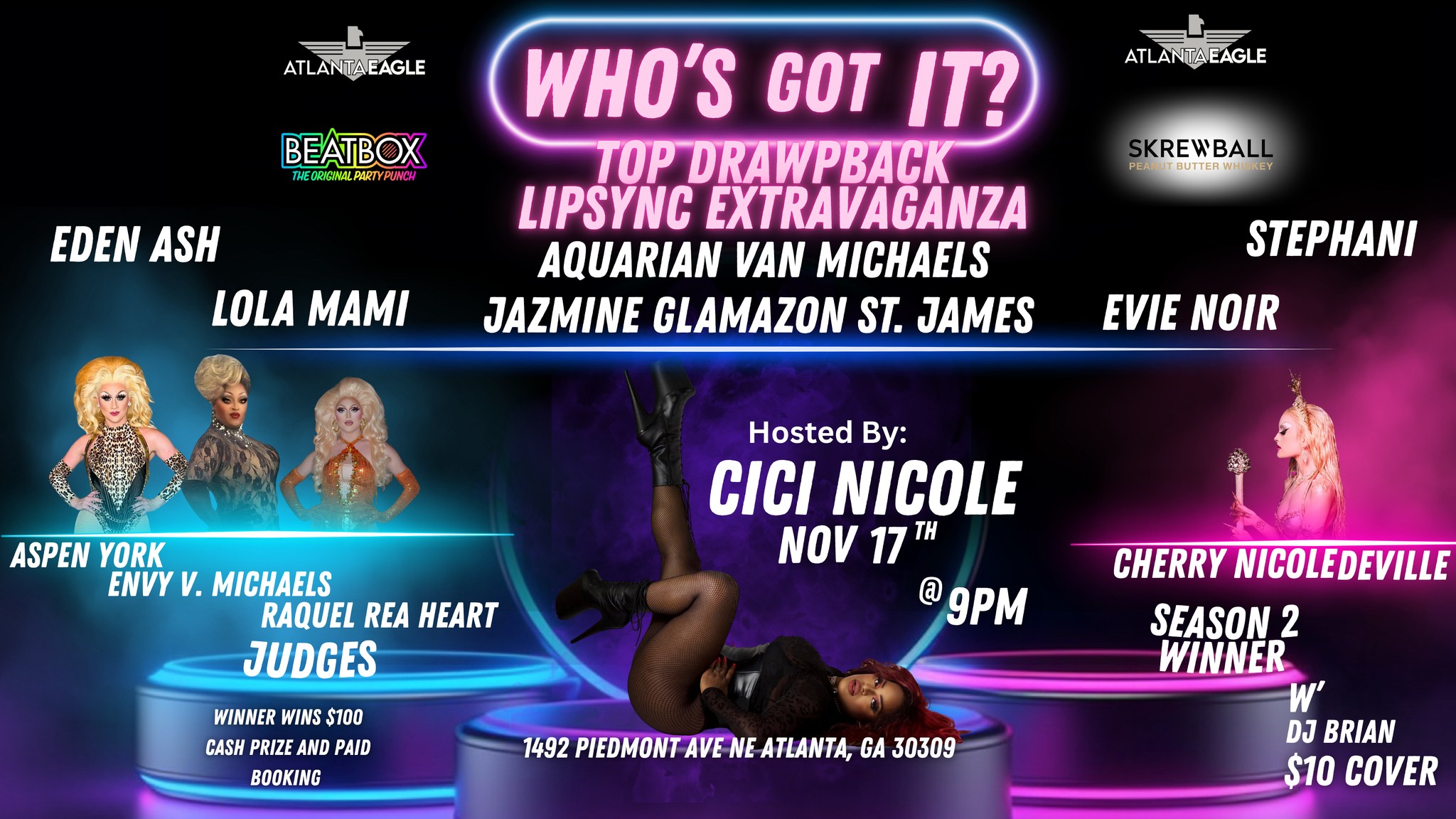 Hosted by CiCi Nicole this November 17 at 9PM! Featuring Eden Ash, Lola Mami, Evie Noir, Aquarian Van Michaels, Stephani, and Jazmine Glamazon St. James Special guest: Cherry Nicole Deville (Season 2 Winner)Judges: Aspen York, Envy V. Michaels, Raquel Rea Heart Winner takes $100 cash prize + paid booking DJ Brian | $10 Cover1492 Piedmont Ave […] |