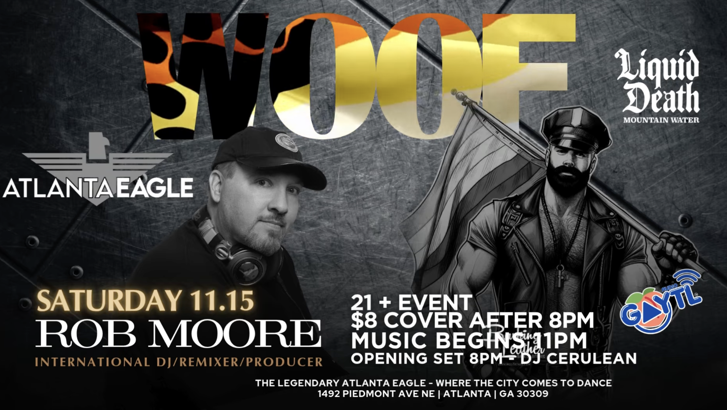 WOOF returns this Saturday, November 15 at Atlanta Eagle! Rob Moore on the decks at 11PM Opening set by DJ Cerulean at 8PM $8 cover after 8PM | 21+ event1492 Piedmont Ave NE, Atlanta, GA#AtlantaEagle #WOOFNight #RobMoore #DJCerulean #BearNight #ATLNightlife