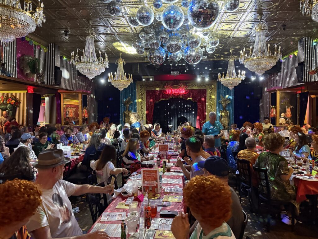 Our monthly drag bingo, which David Atlanta is a part of, and we thank you for that, is the longest-running drag bingo game in the United States. It has been hosted since 1997 by Atlanta drag icon Bubba D Licious. Bubba has been doing drag in Atlanta since the Earth first cooled, I think only Lena Lust has been doing it longer. Our game is always the second Tuesday of the month at Lips Atlanta and Lips donates their space and time to us every month.