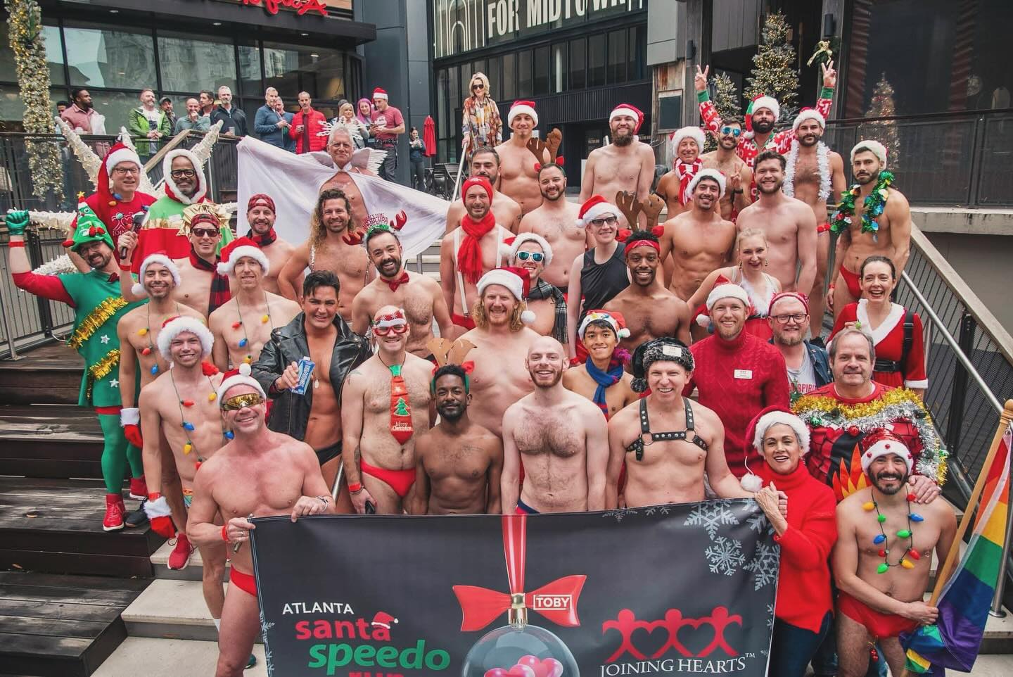 The mission of the Atlanta Santa Speedo Run is to raise funds for those less fortunate through the support of local charitable service organizations while providing a fun, non-competitive athletic event that brings people together to celebrate their community. Joining Hearts, a 501(c)(3) nonprofit organization that raises awareness and funds to support prevention, care, and housing assistance to those impacted by HIV/AIDS in Atlanta, was asked to take the helm to continue the tradition due to our long history in making a difference in Atlanta.